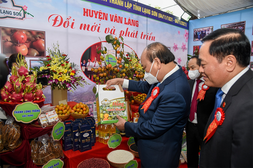 Trước lễ kỷ niệm, Chủ tịch nước Nguyễn Xuân Phúc và các đại biểu đã tham quan các gian hàng trưng bày nông sản của các địa phương, tham quan triển lãm về quá trình phát triển của tỉnh Lạng Sơn.